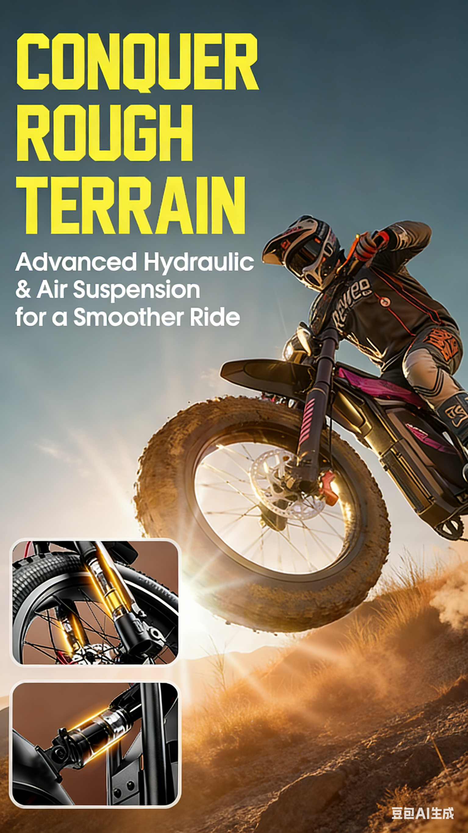 The Cleytro FM110's advanced suspension system—featuring a hydraulic inverted front fork and rear air shock—delivers unmatched stability and comfort. Glide over rough terrain with confidence, knowing that every ride, no matter the road ahead, feels effortlessly smooth."