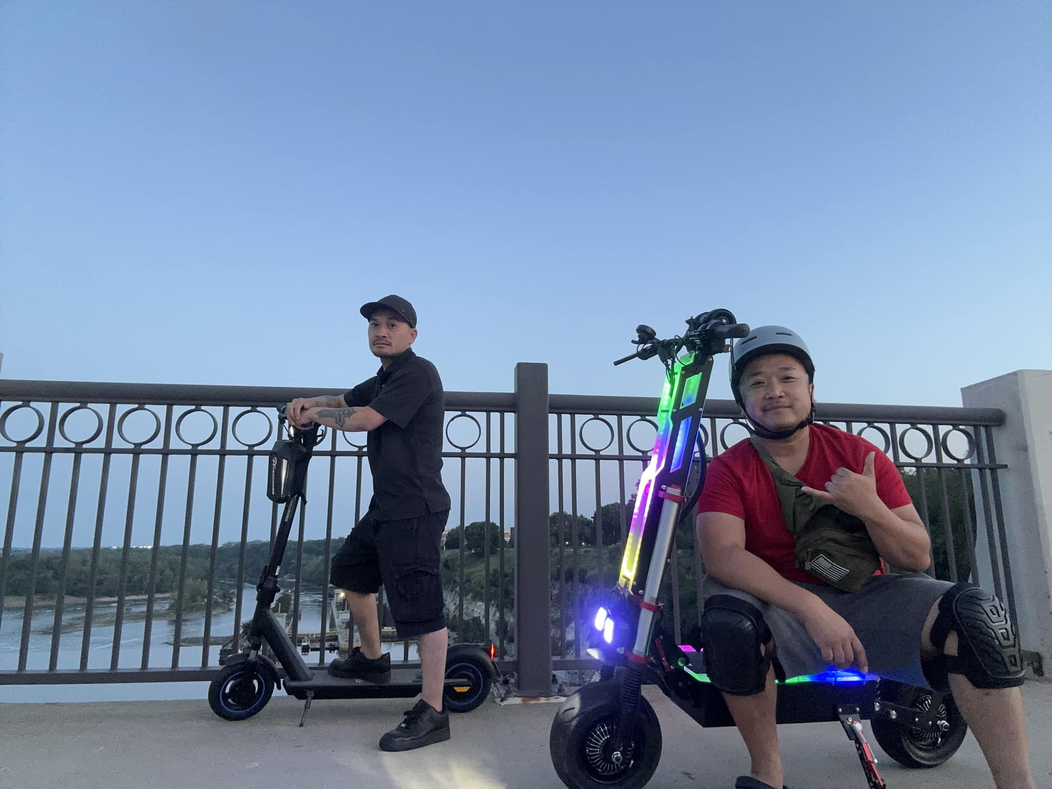 •  Dual Suspension E-Scooter with Seat and RGB Light.