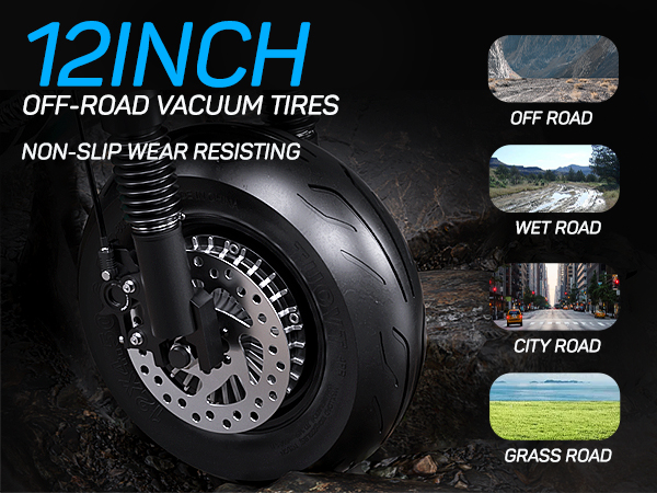 The K8 electric scooter features 12-inch Tubeless tires—designed to provide superior grip, puncture resistance, and all-surface capability. Whether you're commuting or adventuring, these tires deliver the performance you need.